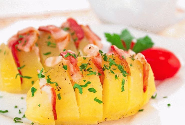 Veľmi chutné nápadné zemiaky! Známy pečený výrobok Nezvyčajné varte doma v rúre.