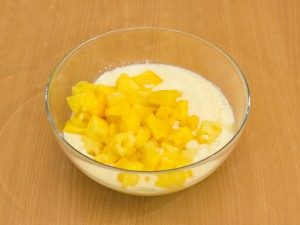 - Vložte ananás, nakrájajte na malé kúsky, premiešajte.