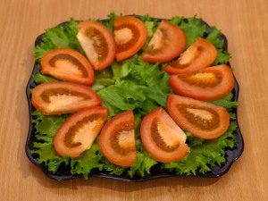 - Na nich sú plátky paradajok v kruhu.