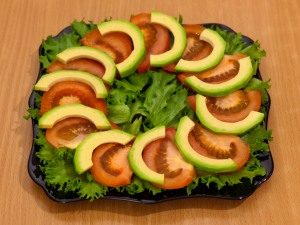 - Položte avokádové polkruhy na paradajky.