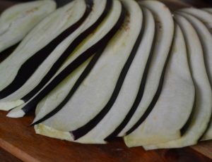 - Umyte baklažán nakrájajte na tenké vrstvy.