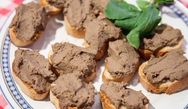 Tradičný recept na domáce varenie chutnej pasty bravčová pečeň, cibuľa, cesnak a biele víno. Pečený bravčový tuk dodáva pastu špeciálnu chuť a arómu. Nech je to vôbec ťažké.