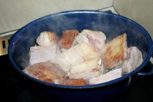 Nalejte ďalšie dve poháre vody a nechajte ich variť ďalších 30 minút. Pozor na voda sa nevarí, v prípade potreby pridajte ďalšie. Kvapalina by mala úplne prikryte bravčové mäso.