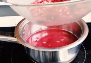 - Zahrievajte, kým sa cukor úplne nerozpustí, vyberte z tepla a pridať čerešňovú šťavu. Môžete použiť sito alebo odšťavovač.