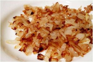 - Maslo ponorte do druhého kockového masla cibule do karamelovej farby.