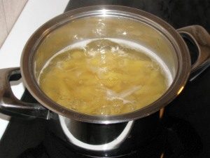 - Cestoviny varte vo vriacej slanej vode podľa pokynov.
