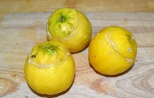 Pokiaľ ide o citróny, odrežte vrchnáky a dajte lyžicu s lyžičkou.