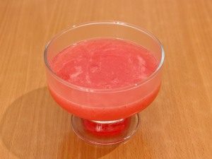 - Želé želatínu namočte do 150 ml studenej prevarenej vody, Nechajte pôsobiť po dobu uvedenú v pokynoch na obale.