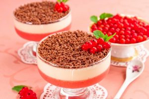Lahodne lahodný dezert sa doma pripraví na dovolenku – želé s ľahkou kyslosťou kombinovanou s jemnou krémovou suflé.