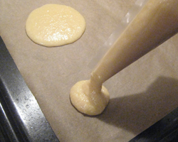 Zmes pečte v predhriatej na 150 stupňov rúra na 20 minút. Toto by sa malo robiť na papieri na pečenie. Vytlačte naň pusinky s vreckom na pečivo alebo husté balenie s orezaným rohom.