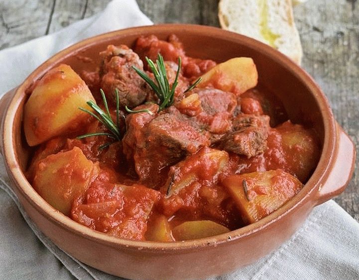 Uvaříme doma tradičné ruské jedlo – dusené zemiaky s bravčovým mäsom, cibuľou, pridaním paradajkovej omáčky. Mäso s zemiaky na peci dlho miznú a ukázalo sa, že sú veľmi jemné a chutné.