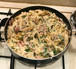 Vynikajúca, rýchla domáca večera s cestovinami aromatická krémová omáčka.