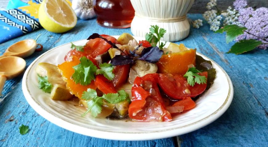 - Nasekanú zeleninu dajte na horúcu marinádu, asi 3 minúty dusíme minút. Panvicu prikryte vekom a nechajte ju najmenej 3 hodiny na noc.
