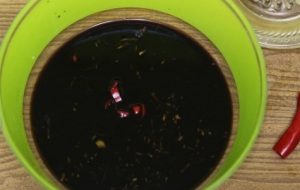- Skombinujte pomarančový džús, sójovú omáčku, med, nakrájanú papriku a strúhaný zázvor. Zamiešame.