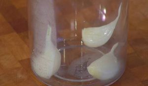 - Vyčistite zvyšné šalotky, nakrájajte na pol krúžky a nalejte ocot po dobu piatich minút.