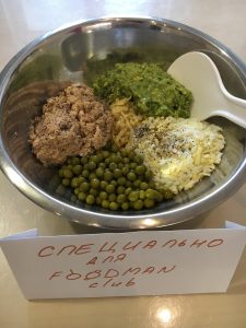 - Zmiešajte všetky ingrediencie (nechajte niektoré z greeny na Porcia). Pridajte trochu olivového oleja.