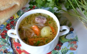 - Ošúpané zemiaky, mrkva, cibuľa, kotleta. Ponorte sa do vývaru po odstránení cibule a bobkových listov varíme a varte ďalšiu pol hodinu.