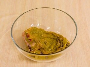 - V uvarenej horčicovej hmote rozvaľkajte kúsky jahňacie.