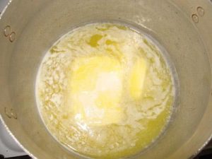- Maslo zahriať a dôkladne pridať kondenzované mlieko premiešajte.