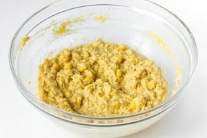 - Vypustite tekutinu z nádoby a nalejte kukuricu do misy. múka kombinovať so sódou, pridať k zvyškom ingrediencie a všetkým dôkladne premiešajte.