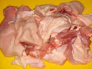 - Opláchnite kuracie stehná, prerezané spojmi.