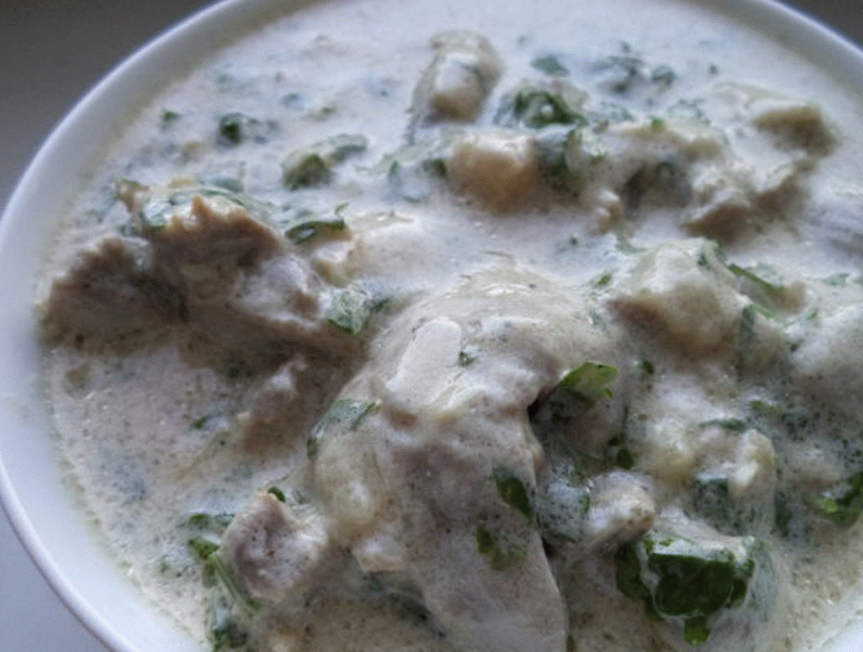 - Naplňte žalúdky touto kyslou smotanou. Zamiešajte obsah hrnca. Kuracie komory dusíme 45 minút na miernom ohni zatvorené veko.