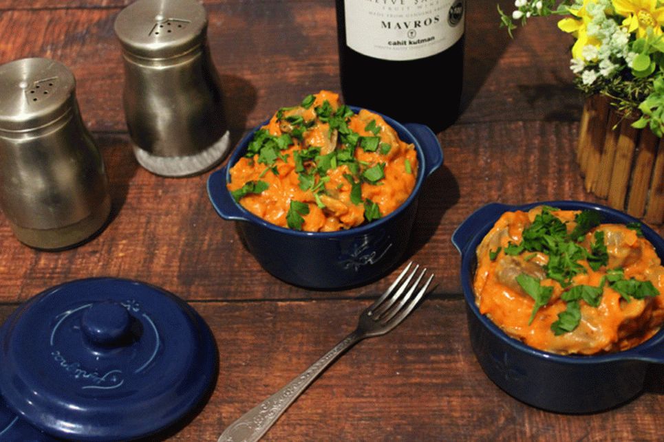 - Vývar zo žalúdkov dusíme do duseného mäsa a zapálime. Pridajte paradajkovú pastu, korenie a dusíme asi 15 minút.