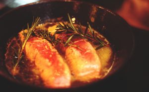 - Zohrejte na miernom ohni. Pridajte čerstvý rozmarín a tymián. Tomim asi sedem až deväť minút.