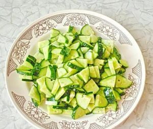 - Nakrájame uhorky na polkruh.