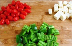 - Môj korenie, odstráňte semená a nakrájajte na kocky. Nasekajte tiež mozzarella.