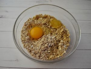 - Roztopte maslo, pridajte do cereálie. pridanie vajcia a medu.