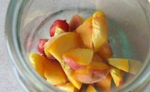 - Vložte ovocie a jahody do mixéra a pridajte med.