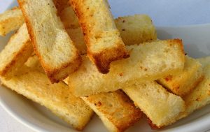 Každú krutón vytrite cesnakom. Pred podávaním pridajte do polievky.