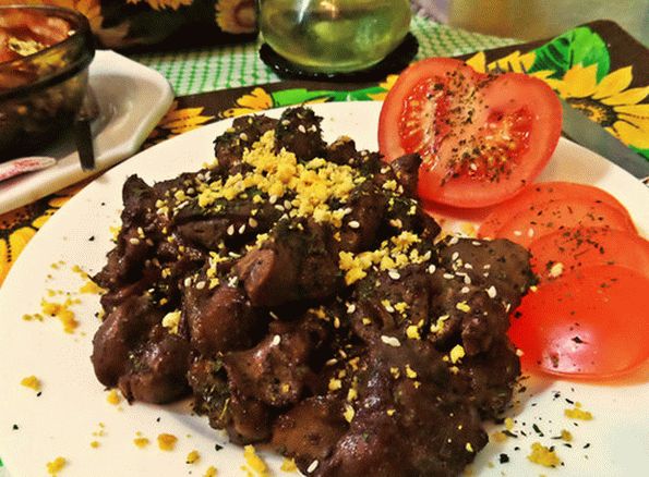- Umyte pečeň, odlupujte film a pridajte do cibule.