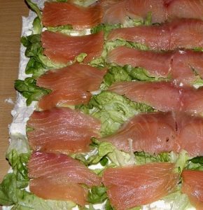 Veľmi chutné a neuveriteľne jemné pita rolky s lososom vhodné ako studená desiata na slávnostné alebo bežné stôl. Sú vhodné na stôl formou bufetu. Ľahká príprava, manipulácia dokonca aj dieťa. Ak chcete urobiť predjedlo chrumkavé, môžete do roliek pridajte kúsok čerstvej uhorky.