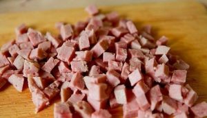 Miešajte vajcia so soľou, mliekom a múkou. Pečieme hrubú palacinku v panvici. Malo by sa to urobiť osobitným spôsobom: už otočiť na vyprážanej strane zakryte strúhaným syrom a opečte druhé side. Vyberte z panvice.
