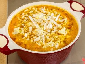 - Pridajte jemne nasekanú pekingskú kapustu, uvarte ďalšie tri minút.