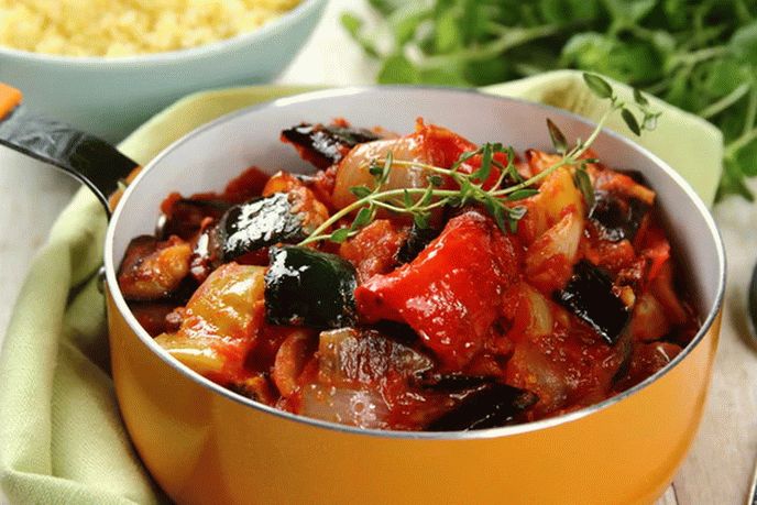 Keď sú kaše a zelenina hotové, je potrebné ich presunúť na panvicu na paradajkovú pastu. Všetko dôkladne premiešajte a nechajte pôsobiť 7 minút.