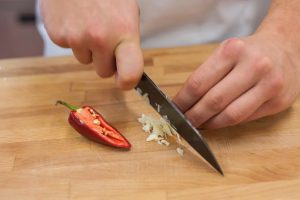Kocky cesnaku a polovicu chilli papričky.