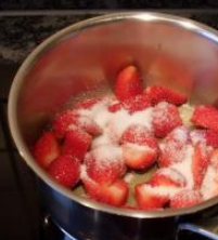 - Roztopte maslo, pridajte jahody, balzamový olej ocot, cukor.