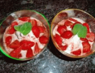 - Do misky dáme guľôčku zmrzliny a na jej vrch roztierame pripravené teplé jahody, zalejeme dezert omáčka.