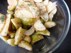 - Zmiešajte jablko s kapustou, posypte soľou, Provence bylinky a korenie. Nalejte olivový olej.