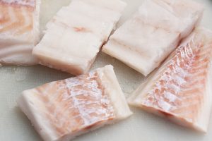 Ryby musia byť nakrájané na stredne porciované porcie a marinujte v soli a korení podľa vašich chuťových preferencií.