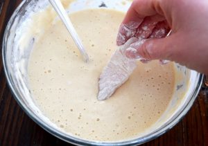 Dajte na oheň panvicu a nalejte rastlinný olej. zatiaľ čo panvici vyhrievané rybie filé sa musia dobre zabaliť varené cesto a preneste na panvicu na vyprážanie. čas vyprážanie závisí od vybraného druhu rýb (od 3 do 15%) minút).