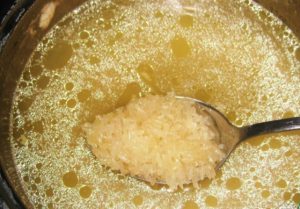 Vypustite vývar, soľ a do nej umyte ryžu.