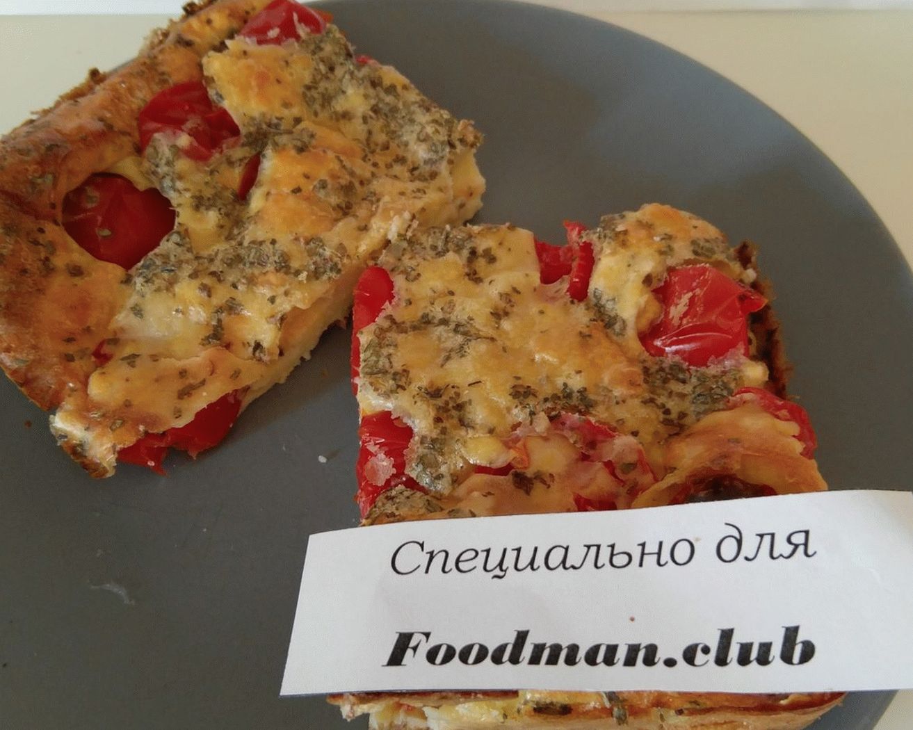 - Nalejte cesto na paradajky. Pridajte 2 polievkové lyžice sušená bazalka. Dajte formulár predohriaty do 200 stupňov pec. Pečieme 30-40 minút.