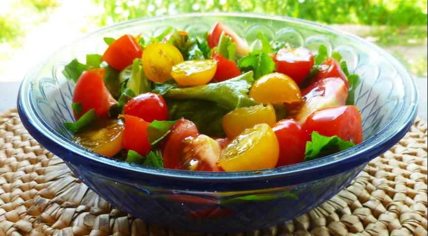 Vynikajúci šalát s bylinkami a paradajkami sa dá ľahko pripraviť doma podľa môjho receptu. Odporúčam vám, aby ste toto jedlo rýchlo pripravili zdravé desiatu.