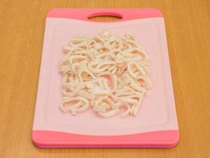 - Chladené chobotnice mäso, nakrájané ostrým nožom na tenké slama.