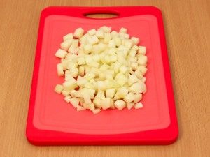 - Jablká, šupky, jadro umyte s kosťami, s ostrým nožom, nakrájané na kocku.