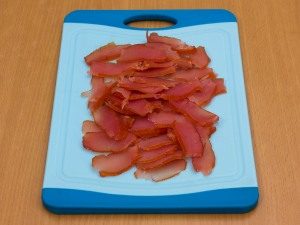 - Nakrájajte carpaccio ostrým nožom na tenké plátky.